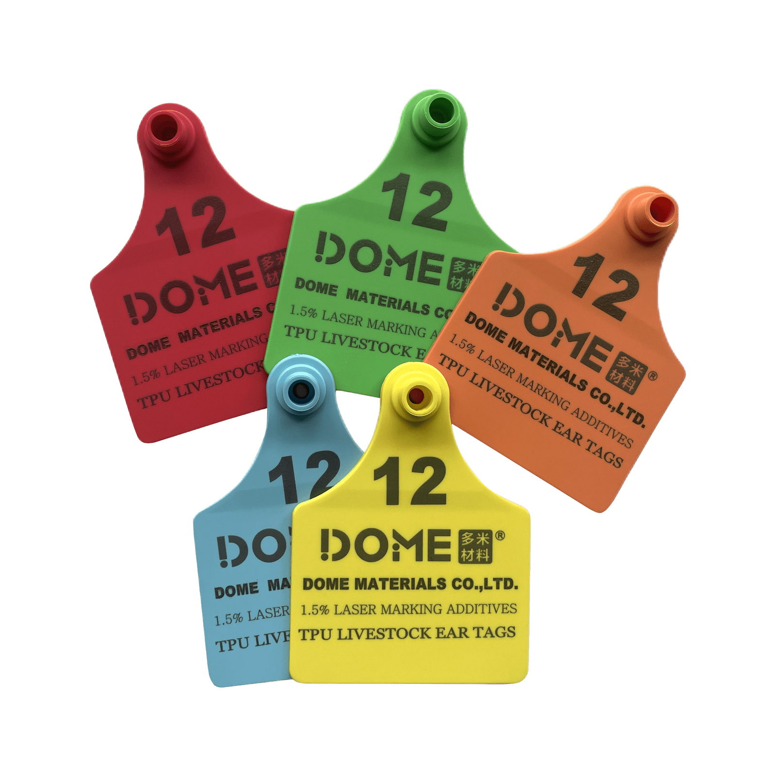 DOME Laser Marking Masterbatches are widely used for a range of applications, including livestock ear tags, security seals, electronic products, food and household packaging, home appliances, medical and automobile products, as well as buttons for keyboards and remote controllers.